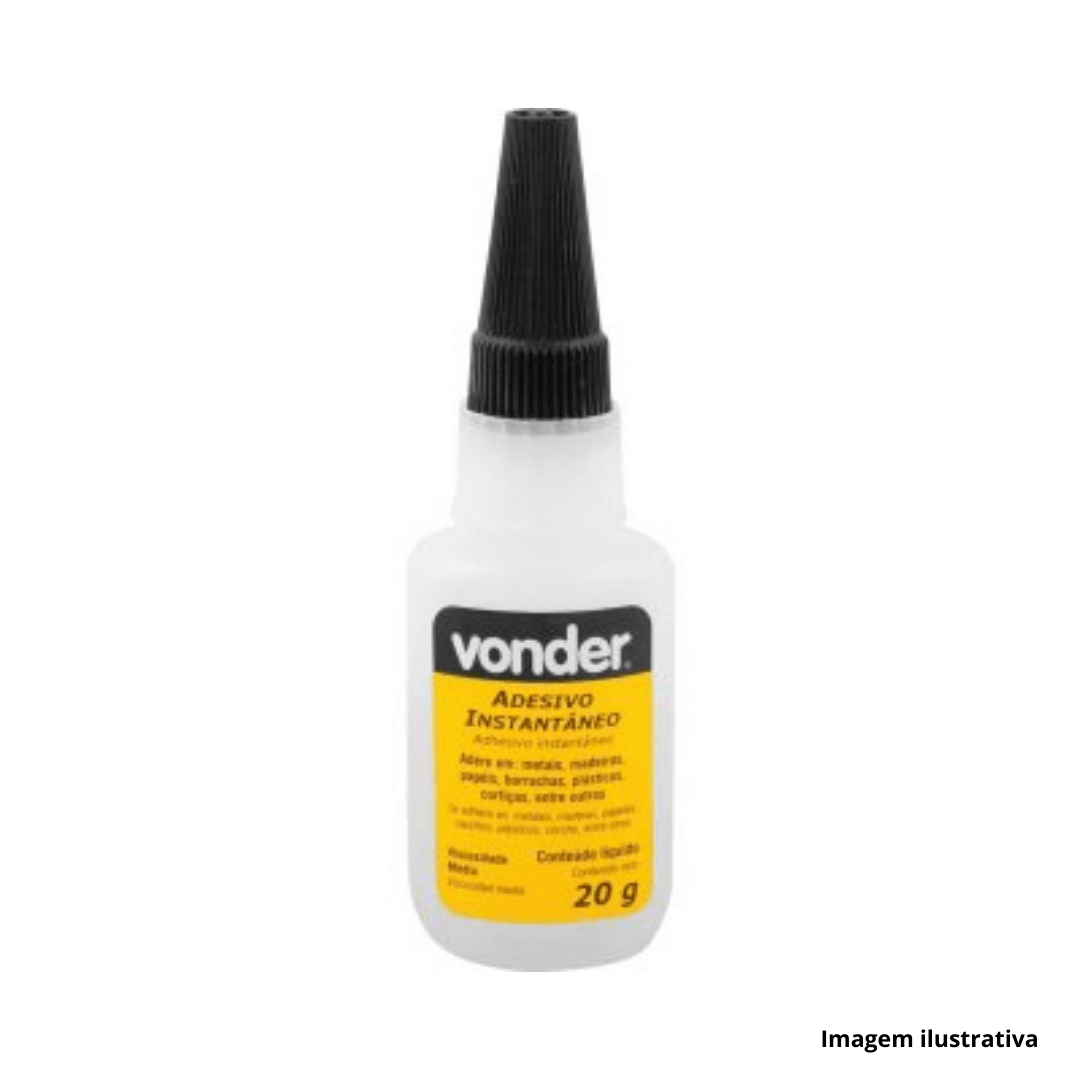 O Adesivo Instantâneo Cianoacrilato da Vonder é uma cola de uso geral, conhecida por sua secagem rápida e alta adesão em diversos materiais.