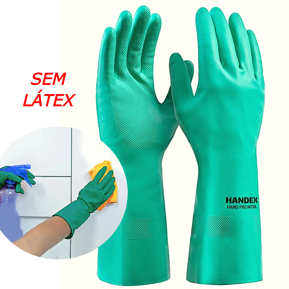A luva Handex Hand Pro Nitril (verde) é um EPI de alta proteção, com Certificado de Aprovação (CA 43035), fabricada em borracha nitrílica com forro de algodão flocado. É ideal para manuseio de produtos químicos, óleos, graxas, alimentos e serviços gerais, oferecendo impermeabilidade, alta resistência a abrasão e excelente aderência antiderrapante na palma.